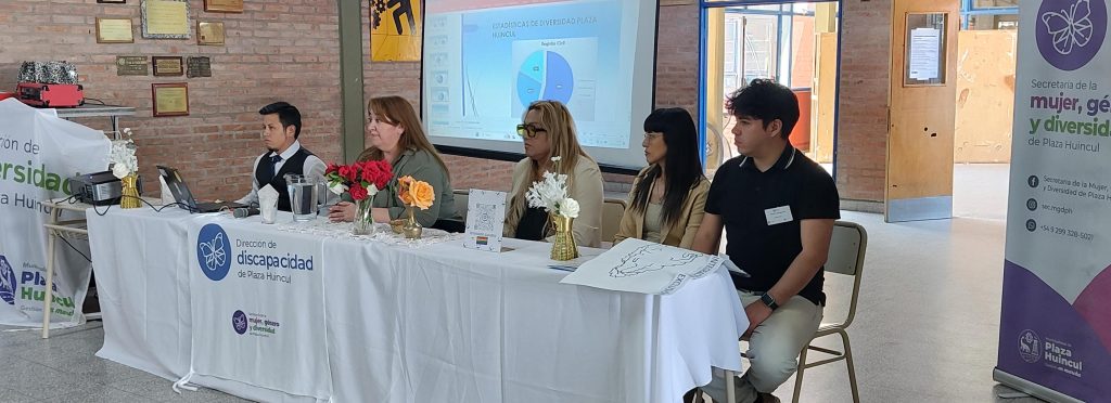 El equipo de la secretaría de la Mujer, Género y Diversidad de la Municipalidad de Plaza Huincul, a través de las direcciones de Diversidad y Discapacidad, participó de la jornada institucional desarrollada en la EPET N°10.