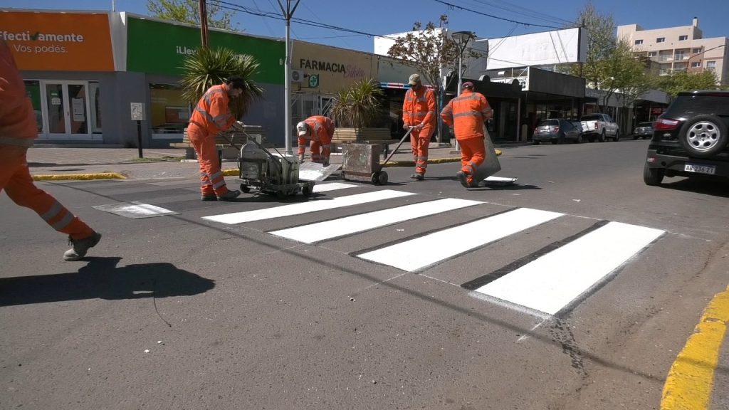 Los trabajos comprenden la demarcación de sendas peatonales, carriles y señalización vial, con el objetivo de mejorar la seguridad y el orden del tránsito. Se solicita la colaboración y precaución de los vecinos que circulen por las zonas intervenidas.