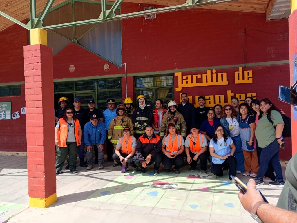 Con participación del personal policial y de bomberos voluntarios se realizó un simulacro de evacuación en el jardín 3.