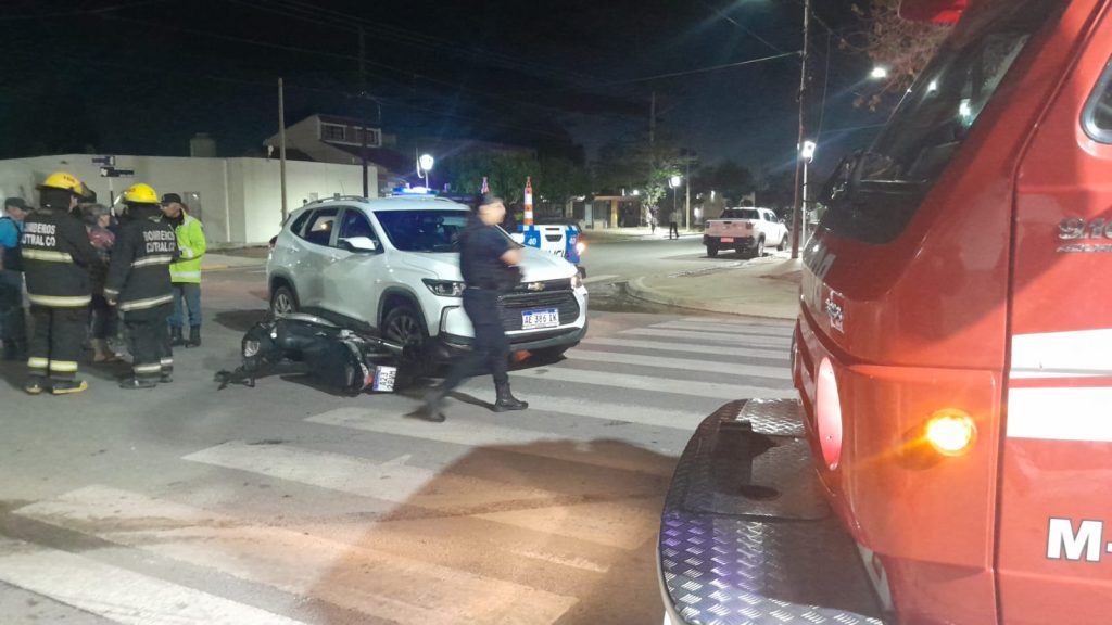El choque se registró la noche del jueves en Sáenz Peña y Mosconi de Cutral Co, entre conductores de una camioneta marca Chevrolet y una motocicleta. Como consecuencia del impacto, la motociclista fue derivada en ambulancia hasta el hospital de Complejidad Media para evaluar su estado.