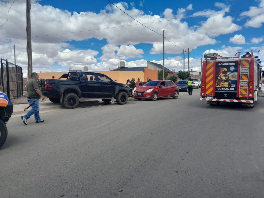 Este jueves, pasadas las 14 horas, se registró un accidente de tránsito en la intersección de Irigoyen y Cánepa, en el barrio Unión de Cutral Co, que involucró a una camioneta Toyota negra y a un Peugeot 206 rojo.