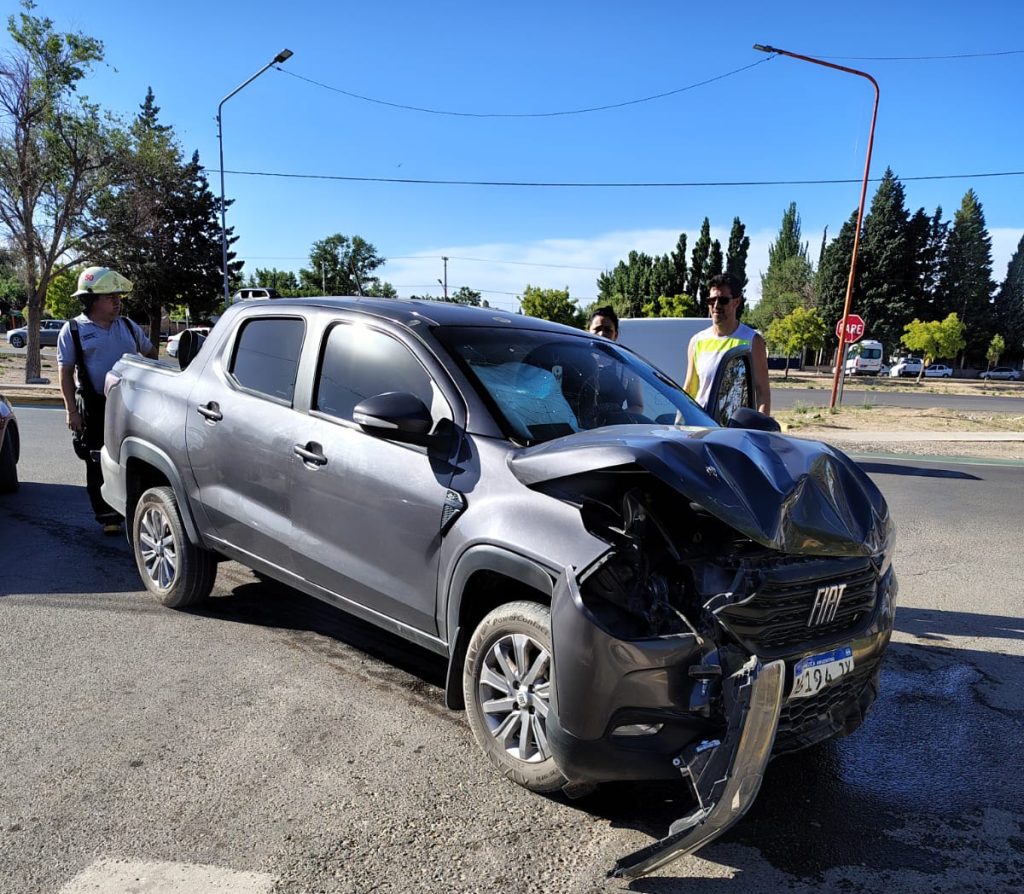El hecho ocurrió esta tarde, antes de las 18, en la intersección de Ejército Argentino y Perniseck de Cutral Co. Una mujer quese desplazaba a bordo de una camioneta Fiat Strada debió ser asistida en la guardia del hospital después de la colisión.