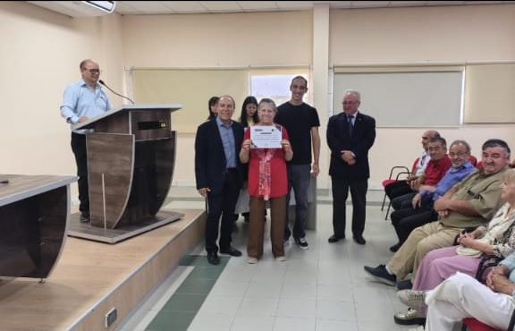 Gladys Noemí Gomez recibió feliz su certificado de la UTN