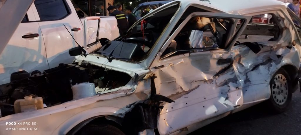 La camioneta de color gris y el auto chocaron en la esquina sudeste, tal como informó Campos. La primera camioneta terminó su marcha contra un paredón y sobre la vereda de una vivienda. “El paredón no tenía riesgo de derrumbe, según informó el jefe del cuartel.