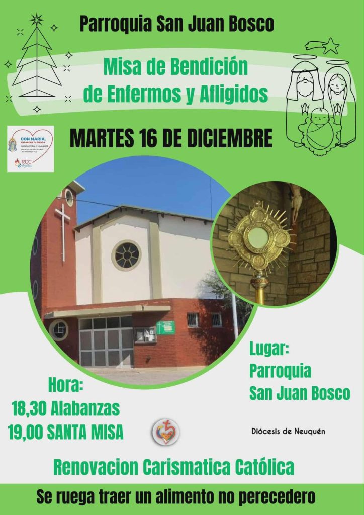 Hoy, se celebrará la misa de bendición de enfermos y afligidos en la parroquia San Juan Bosco de Cutral Co.