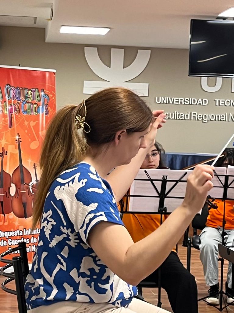 La actividad estuvo a cargo de la maestra Lucía Zicos, quien con mucha dedicación brindó herramientas técnicas y musicales orientadas al trabajo colectivo, la interpretación en conjunto y el fortalecimiento de la experiencia orquestal de los jóvenes músicos.