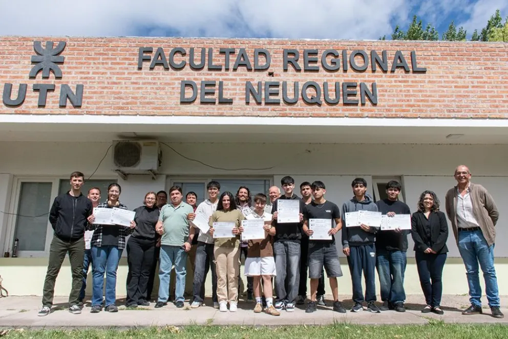 De la entrega de certificados participaron también el vicedecano de la casa de altos estudios, Horacio Spesot; la secretaria de Extensión de la sede local de la UTN, Ailen Vázquez; la gerente de Relaciones con la Comunidad de Tecpetrol para la Cuenca Neuquina, Andrea Fernández; y miembros de equipos de gobierno y conducción de las escuelas participantes.