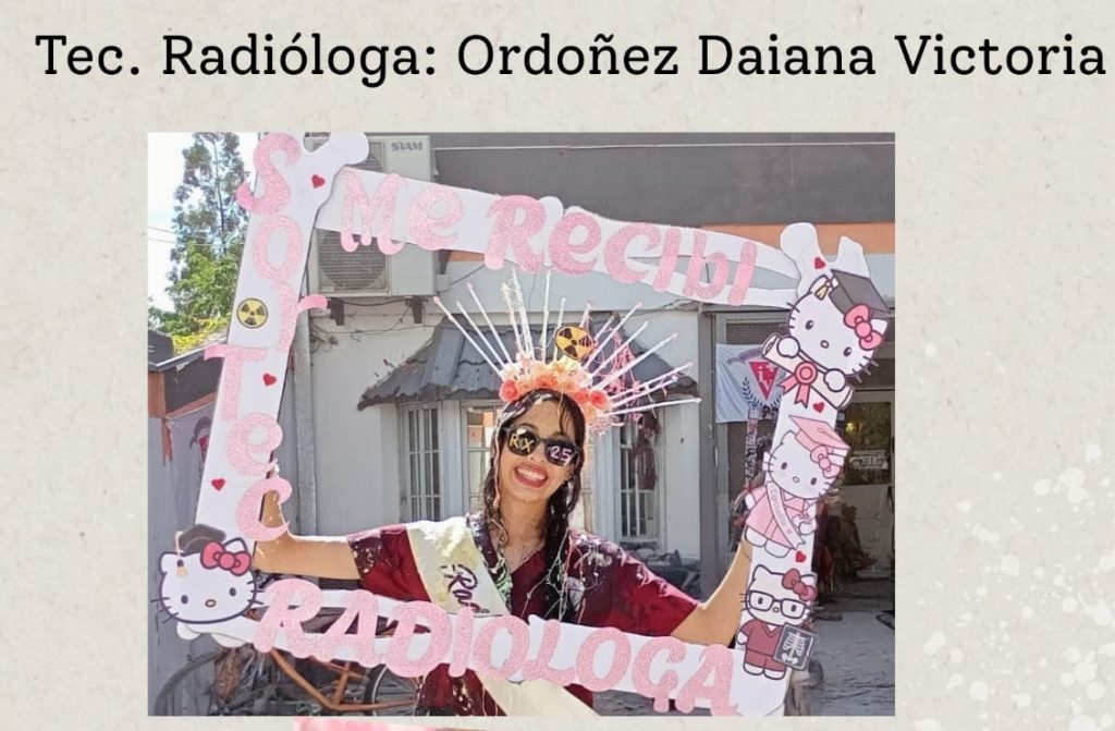 Felicitaciones a la nueva Técnica Radióloga: Ordoñez Daiana Victoria. Estamos orgullosos de la hermosa persona que sos, tus logros nos llenan el alma. Te amamos inmensamente. Papá, tus hermanos Gonza y Román, y Lucy.