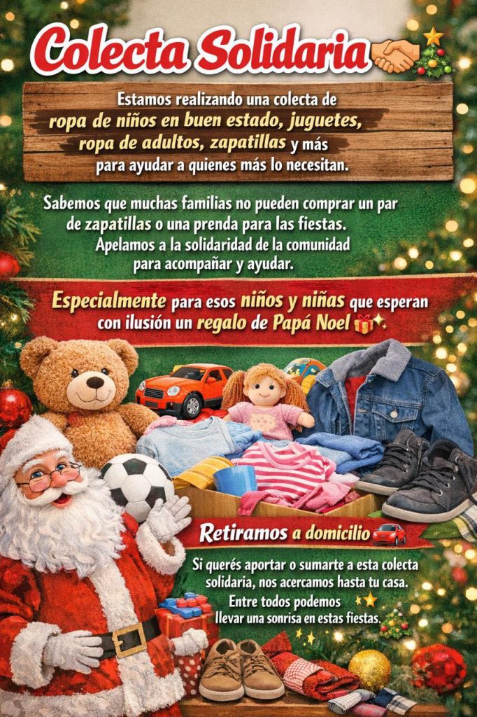 Continúa en la ciudad una colecta solidaria destinada a reunir ropa, calzado y juguetes para asistir a familias que atraviesan situaciones de vulnerabilidad, especialmente de cara a las fiestas de fin de año.