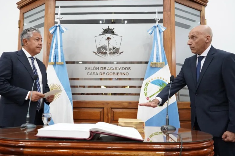 El gobernador Rolando Figueroa leyó el decreto de designación, luego Conforte firmó el acta de asunción del cargo y finalmente se sumaron las firmas de los ministros del gabinete provincial, de autoridades de Seguridad y del mandatario provincial.