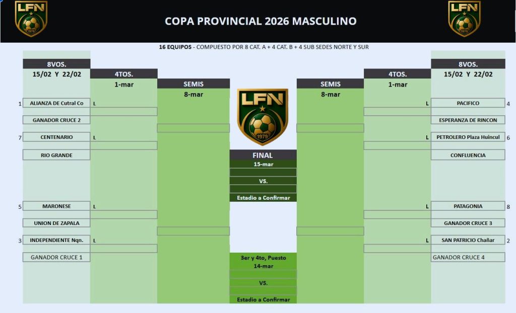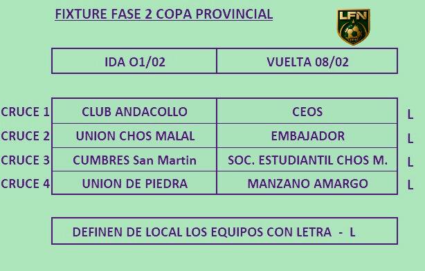 En el día de ayer, se dió a conocer cuales son los cruces para la segunda edición de la Copa Provincial de Lifune, la cual integra a varios equipos del interior de la provincia y de las dos categorías de la liga.