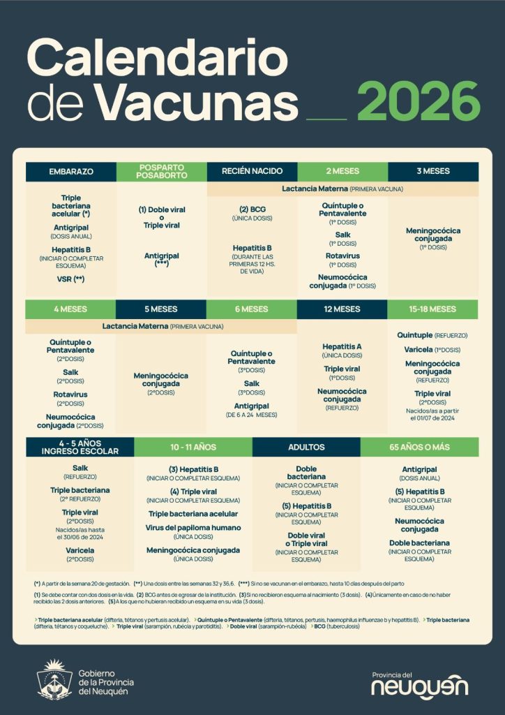 El esquema incluye vacunas gratuitas desde el embarazo hasta la adultez mayor y se aplica en todos los centros de salud públicos de la provincia.