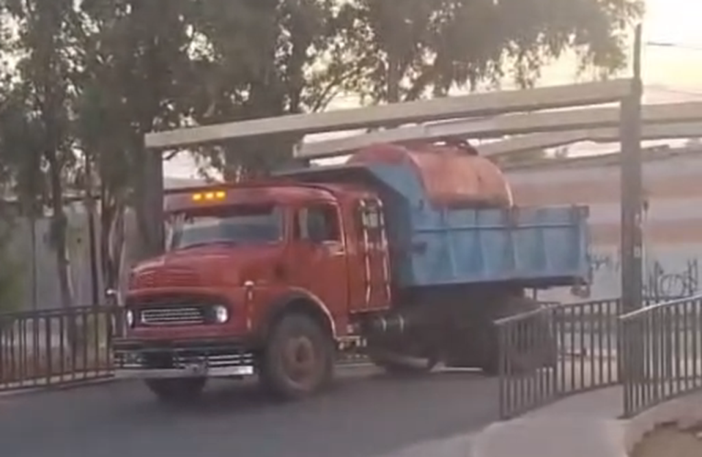El conductor del camión no tuvo en cuenta la carga que transportaba con la altura máxima del puente, interrumpiendo el tránsito al quedarse detenido en el lugar.