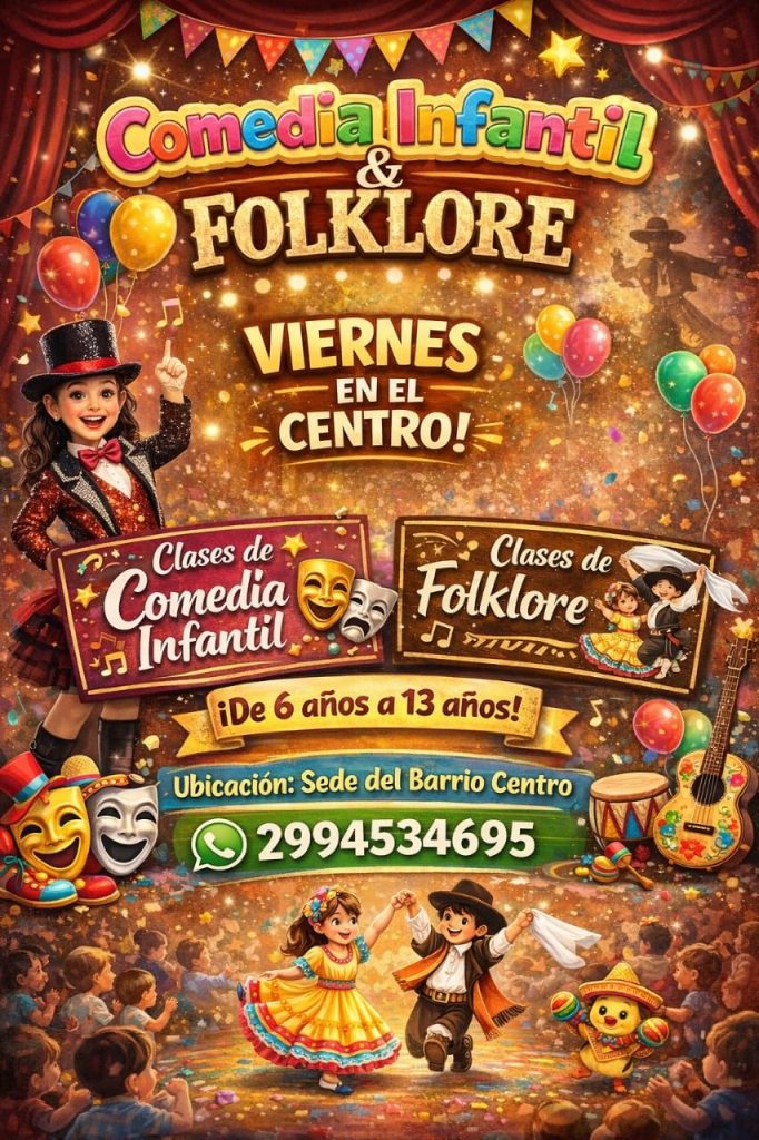 Por un lado, el taller de comedia infantil estará orientado a la actuación, el uso del cuerpo y la voz, así como a la improvisación y al desarrollo de habilidades expresivas. En paralelo, el espacio de folklore permitirá que los niños conozcan y practiquen danzas tradicionales acompañadas de música típica, fomentando el respeto por las raíces culturales.
