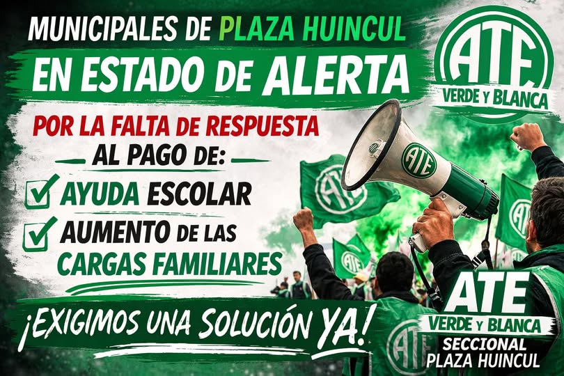 “Consideramos que estos derechos forman parte fundamental del salario de las familias trabajadoras y no pueden seguir siendo postergados”, señalaron en el comunicado difundido por la seccional ATE Verde y Blanca de Plaza Huincul.