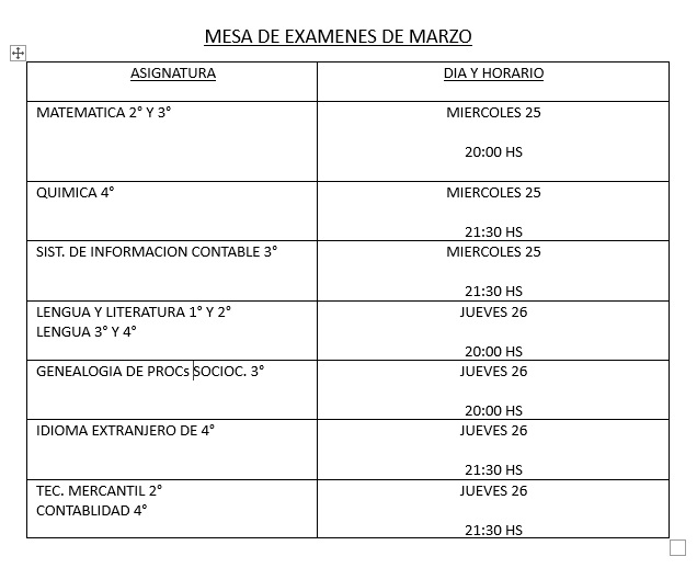 El miércoles 25 se tomarán los exámenes de Matemática de 2° y 3° año a las 20:00 horas. Más tarde, a las 21:30 horas, será el turno de Química de 4° año y del espacio Sistema de Información Contable de 3° año.