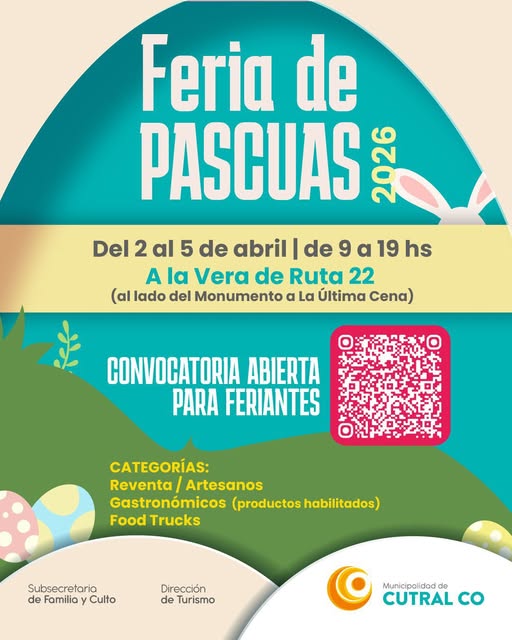 Cutral Co lanzó la convocatoria abierta para una nueva edición de la Feria de Pascuas 2026, un evento que busca promover el trabajo de emprendedores locales y ofrecer a la comunidad una propuesta comercial y recreativa en el marco de esta celebración.