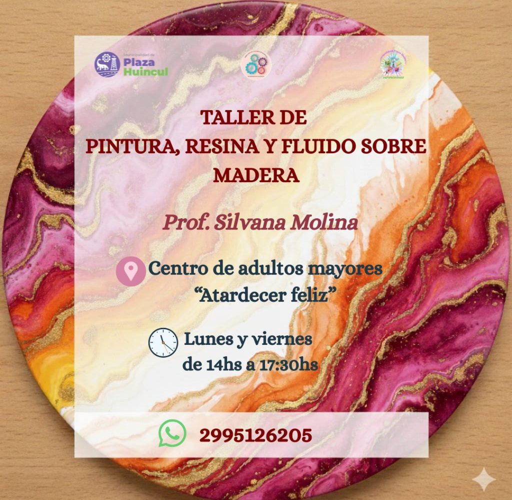 La Municipalidad de Plaza Huincul, a través de sus espacios de formación comunitaria, invita a la comunidad a sumarse a un nuevo taller artístico de pintura, resina y técnicas de fluido sobre madera, una propuesta creativa pensada para aprender y desarrollar habilidades en artes visuales.