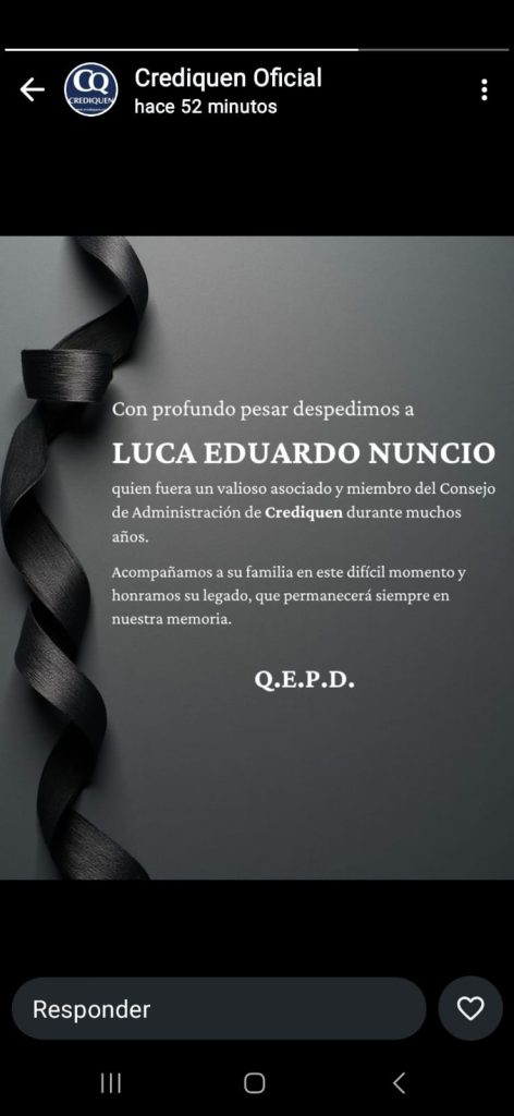 Con profundo pesar despedimos a Luca Eduardo Nuncio, quien fuera un valioso asociado y miembro del Consejo de Administración de Crediquen durante muchos años.