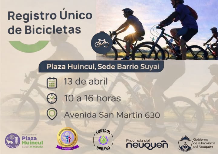 Plaza Huincul llevará adelante una nueva jornada del Registro Único de Bicicletas, con el objetivo de fortalecer la seguridad y promover el uso responsable de estos rodados en la ciudad.