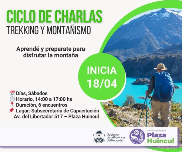 Plaza Huincul, a través de la subsecretaría de Capacitación, anunció el inicio de un nuevo ciclo de charlas destinado a quienes deseen iniciarse o perfeccionarse en el trekking y el montañismo.