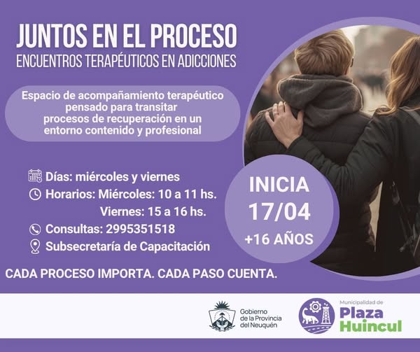 Plaza Huincul, a través de la subsecretaría de Capacitación, pondrá en marcha un nuevo espacio de acompañamiento terapéutico destinado a personas que atraviesan procesos de recuperación en adicciones.
