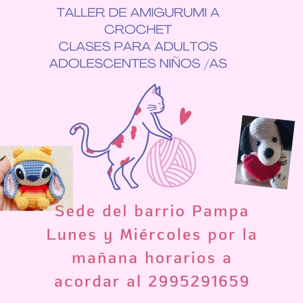 Se encuentra abierta la inscripción para un taller de amigurumi a crochet en la sede del barrio Pampa, dirigido a niños, adolescentes y adultos.
