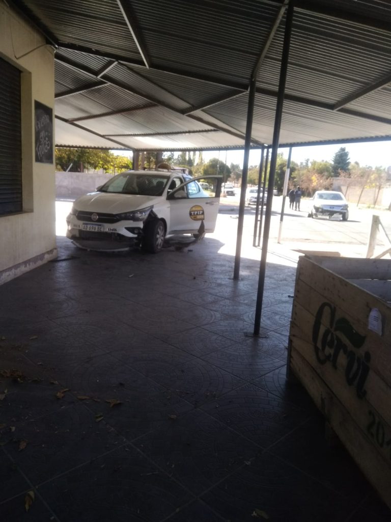 Producto del impacto, el taxi involucrado terminó subido a la vereda de un comercio ubicado en la esquina, generando momentos de tensión entre vecinos y ocasionales peatones que transitaban por el sector al momento del hecho.