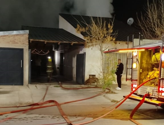 Tres dotaciones de bomberos voluntarios acudieron en ayuda de una familia del barrio Centenario porque había un incendio en la vivienda.