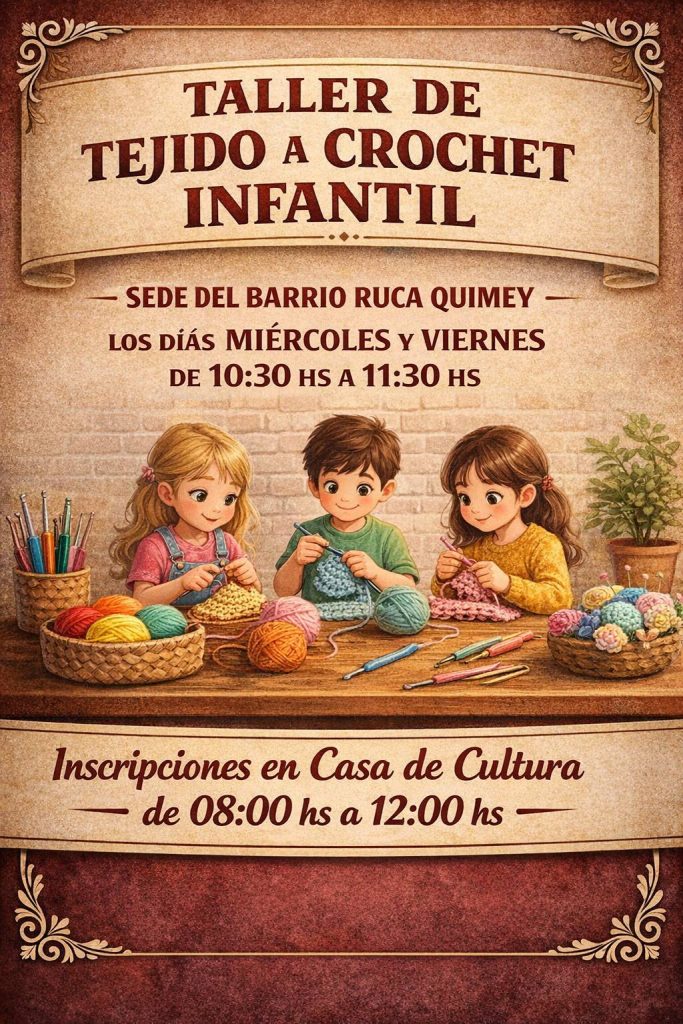 La comunidad de Plaza Huincul suma una nueva propuesta recreativa y formativa destinada a las infancias. Se trata de un taller de tejido a crochet infantil, que se desarrollará en la sede del barrio Ruca Quimey.