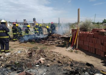Las llamas tomaron una pila de maderas cerca de una vivienda