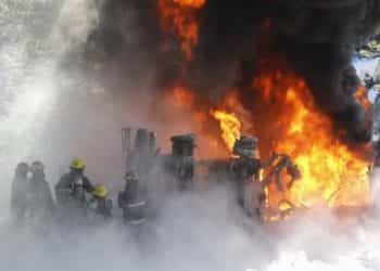 Se recalentó una rueda de un camión con petróleo en la Ruta 22 cerca de Huincul