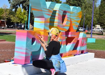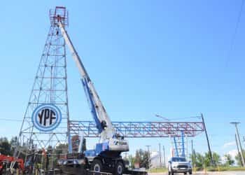 Volvió a instalarse el cartel de YPF en la torre de acceso a Huincul