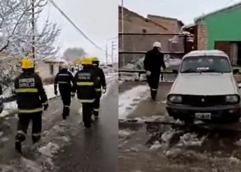 La nieve y su costado más amable: así jugaban los bomberos y los niños en Cutral Co