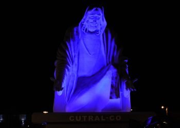 Iluminaron de azul El Cristo y la Plaza de las Banderas en Cutral Co y Huincul