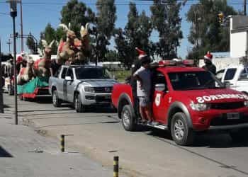 Papá Noel le pidió ayuda a los bomberos de Huincul y repartieron golosinas