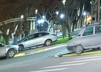 Chocaron dos autos y uno quedó en la vereda de la plaza San Martín, en Cutral Co