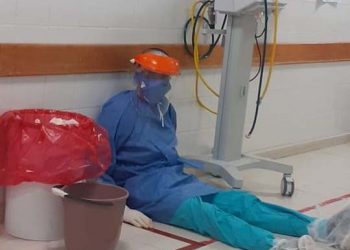 El fin de semana se viralizó la fotografía de un médico del Hospital Complejidad VI descansando en el piso luego de intubar a un paciente en la madrugada